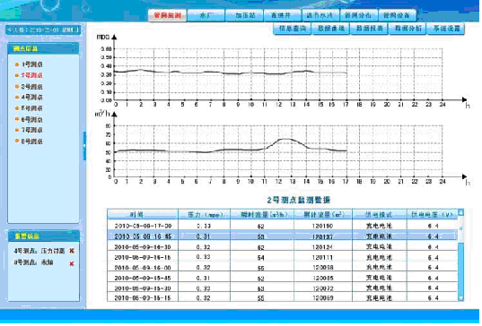 城市供水管網監測系統適用于供水企業遠程監測供水管網,工作人員可以在供水公司調度中心遠程監測全市供水管網的壓力及流量情況。科學指揮各水廠啟停供水設備,保障供水壓力平衡、流量穩定;及時發現和預測爆管事故的發生。