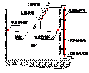 一般情況下,對灌區油罐實行集中監控方式,每個油罐無論容積大小,均實行單獨監測通道實時在線溫度檢測方式,避免同一監測通道監測多個油罐而造成的許多維護管理方面的不便,光纖光柵溫度探測器在油罐上的間隔可以按照3-6米布置,也可以做成雙環布設,采用專用夾具將光纖光柵溫度探測器布設在浮盤/浮船擋油槽的密封圈附近,然后通過光纖/光纜把探測器串連起來,接入到控制室的信號處理器,通過信號處理器對采集到的信號進行解調,測量出現場溫度的實際情況,并將相關的信息傳遞到中央控制室。